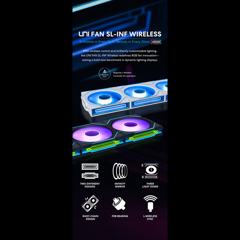 LIAN LI UNI FAN SL-Infinity Wireless 120mm ARGB – Black (1-Pack) Controller NOT Included